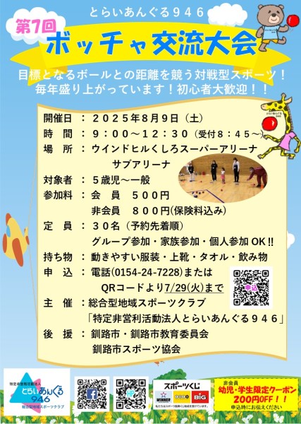 8/9(土) 9:00〜12:30ボッチャ交流大会を行います🍀