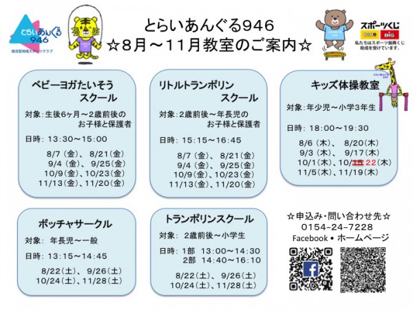 8月〜11月教室の開催日程
