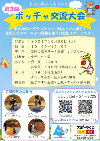 10/30(土) 10:00〜12:00ボッチャ交流大会を行います🍀東京パラリンピックで日本人選手の活躍によりメダル獲得したボッチャ😃経験者も初めての方も!一緒に楽しみましょう🌟ご家族で!お友達との参加もOK‼️もちろんお一人でもOKです‼️お気軽にご参加ください✨