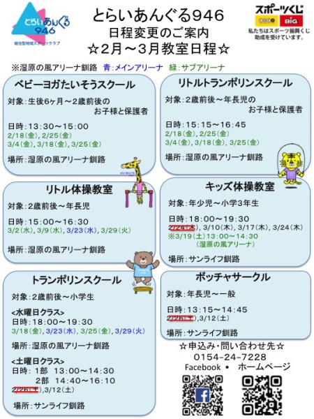 3/19(土) 13:00〜14:30湿原の風アリーナ サブアリーナで開催✨いつもと違う場所・時間で新鮮だと思います‼️よろしくお願いします🍀