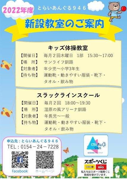 4月より始める教室のご案内です🌟ご好評のキッズ体操教室を15:30〜17:00のお時間を追加開催します!18:00〜19:30のクラスも現在行ってます!イベントで楽しんで頂いたスラックラインも教室として登場です!大人の方も楽しめますよ!お気軽にお問合せください✨よろしくお願いします😄