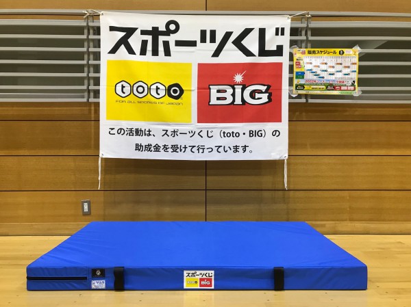 スポーツくじの助成金をうけトランポリンの安全補助マット(¥87,670)購入しました😄レベルアップに使用してます✨