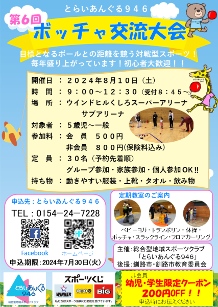 8/10(土) 9:00〜12:30ボッチャ交流大会を行います🍀経験者も初めての方も!一緒に楽しみましょう🌟個人でも!ご家族やお友達との参加もOKです‼️親子三世代で楽しむ方もいらっしゃいます!ご参加をお待ちしております!😊お申込みはホームページお問い合わせからもできます✨