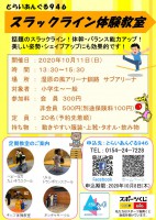 10/11(日)13:30〜15:30スラックライン体験教室を開催します!スラックラインは綱渡りとトランポリンを合わせたような特徴があります!バランスをとって体感はもちろん、集中力も鍛えられますよ(^^)!!とっても楽し...