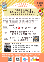 3/23(日)10:00〜12:00『地域とつながるあたらしいスポーツ環境』〜多様な意見と合意形成〜をテーマに講演会を開催します!😊ご興味のある方は、ぜひご参加ください✨講師は北海道各地で固定概念にとらわれず、地域...