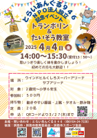 4/4(金)14:00〜15:30『トランポリン&たいそう教室』開催します✨楽しく身体を動かしましょう‼️NPO設立イベントととしてお得にご参加いただけます😊申込は下記フォームからお願いします✨https://forms.gle/fYu6HVznc...